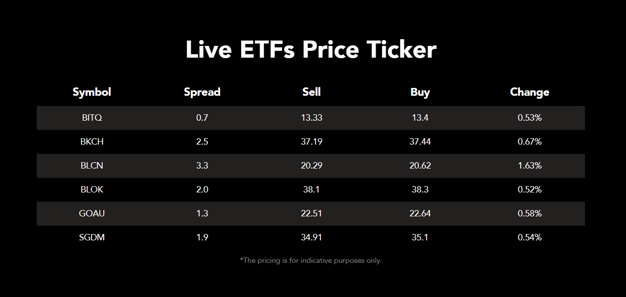 Access Exchange-Traded Funds that cover everything from global indices to gold mining.